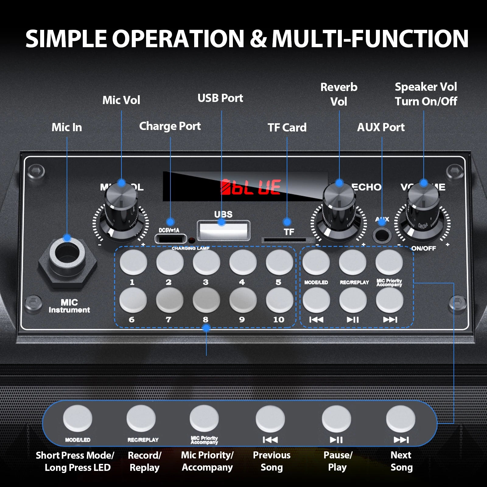- Immersive audio with LED ambience: A 6.5-inch subwoofer and DSP deliver deep bass and crystal-clear highs, with 3D surround and stereo modes—enjoy distortion-free sound and dynamic lighting for any party.