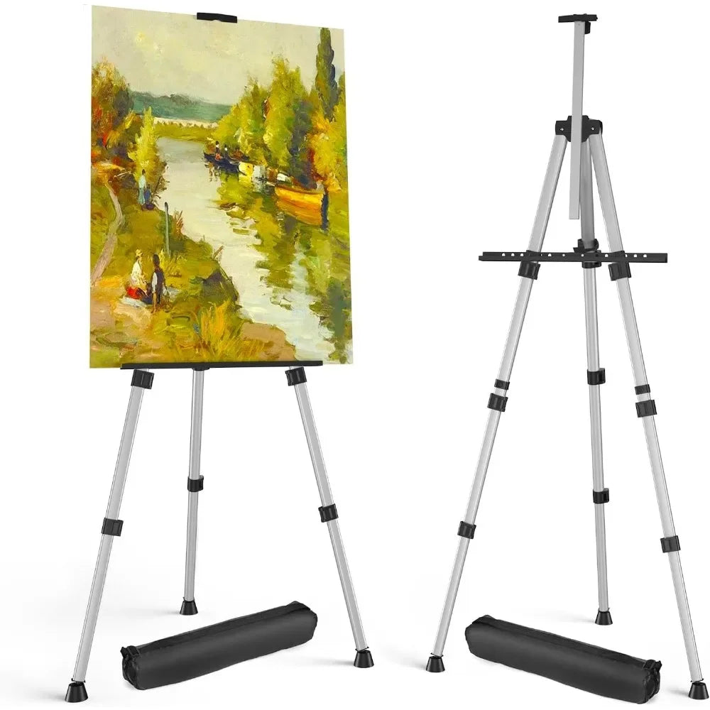 Elevate your artistic presentations with the Portable Adjustable Aluminum Metal Tripod Display Easels from Active Living Wellness Lifestyle. Designed for versatility, these easels range in height from 17 inches to 66 inches, making them ideal for both tabletop and floor displays. Whether you're showcasing your paintings at an art show, providing a visual aid for a presentation, or setting up for a special event, these easels have you covered.